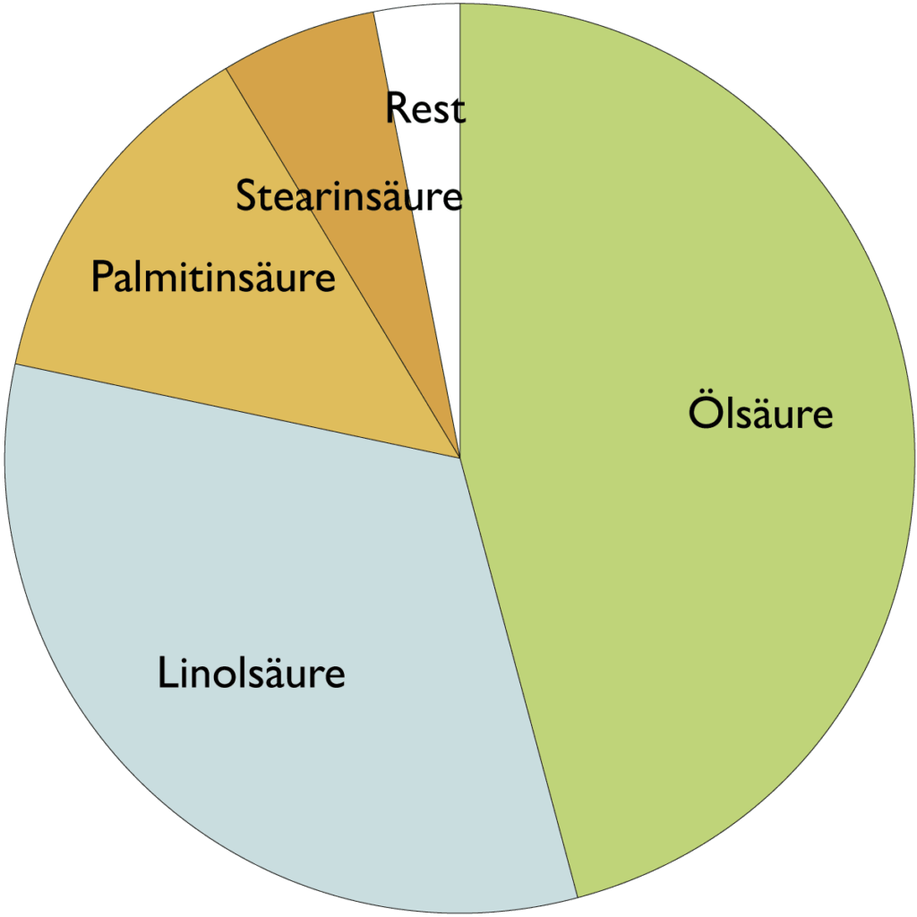 Legende: Ölsäure | Linolsäure | Palmitinsäure | Stearinsäure | Alpha-Linolensäure